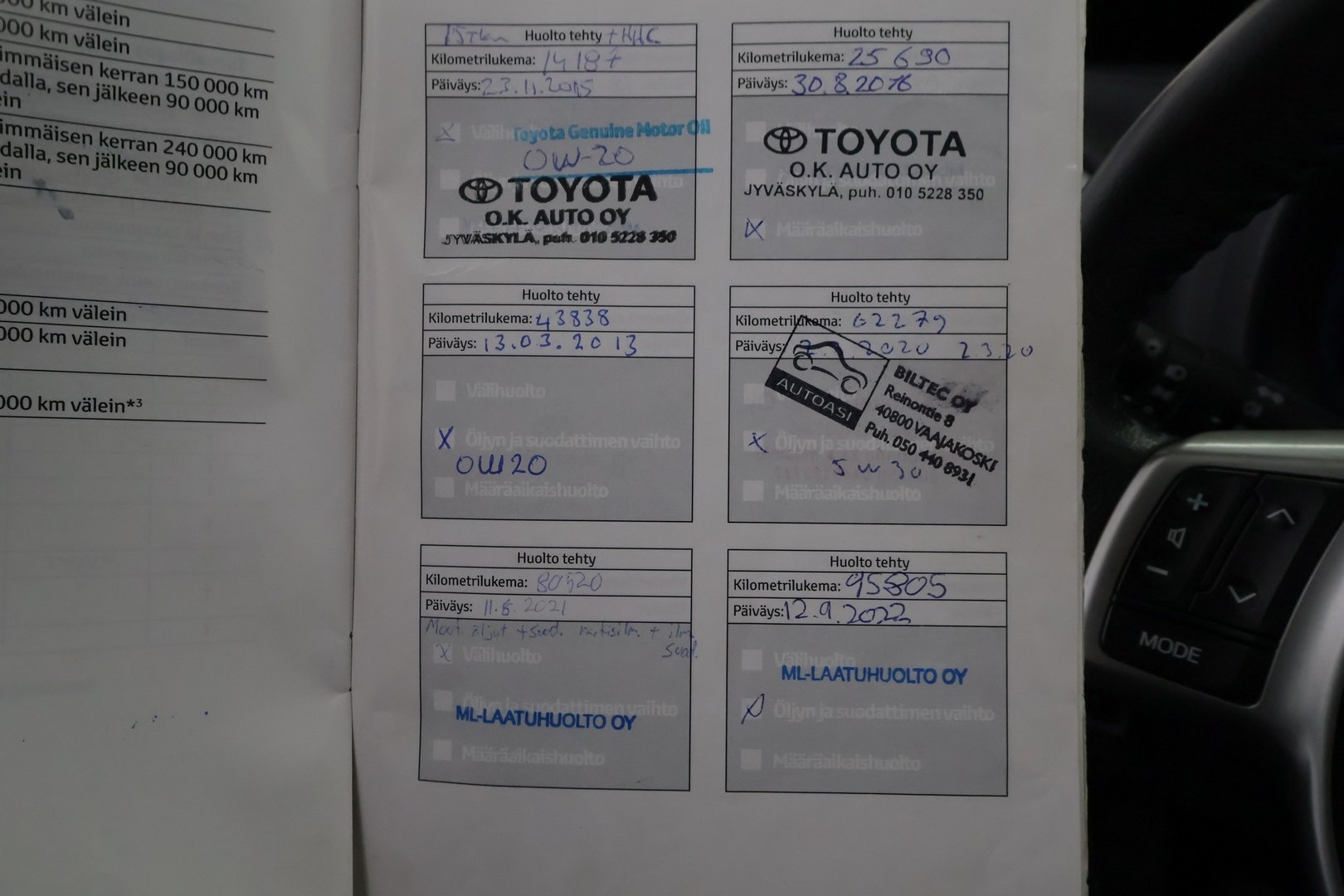- Paperinen huoltokirja