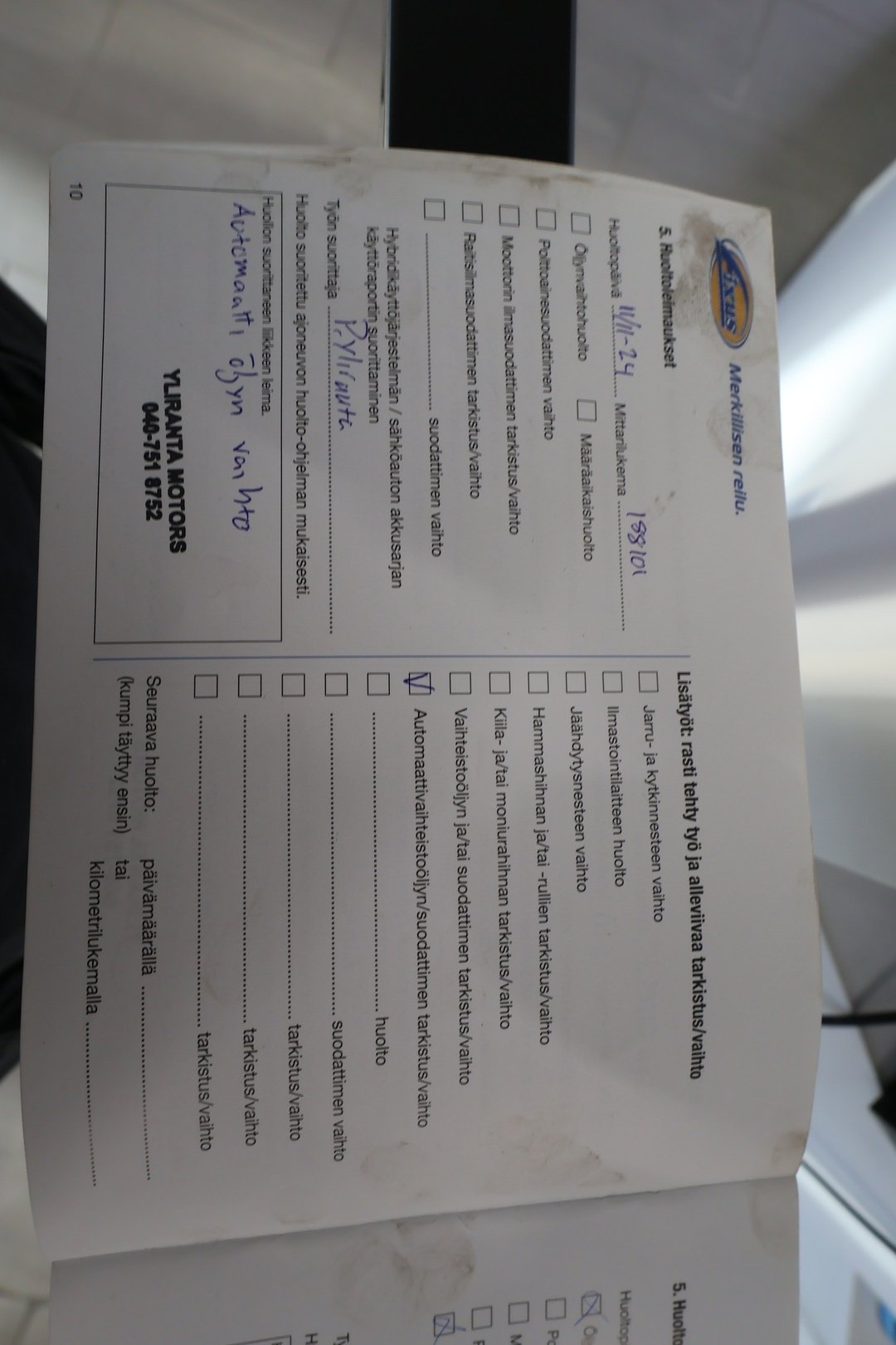 - Huoltohistoria