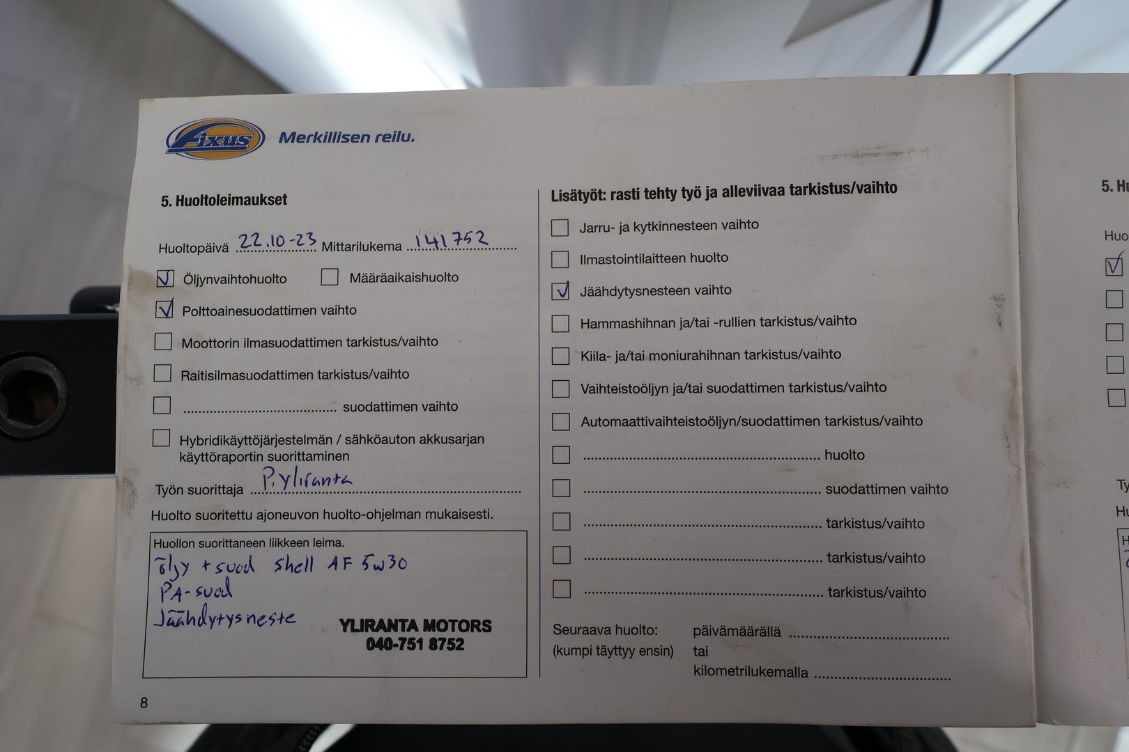- Viimeisin huolto tehty 231tkm kohdalla, 10/2025
