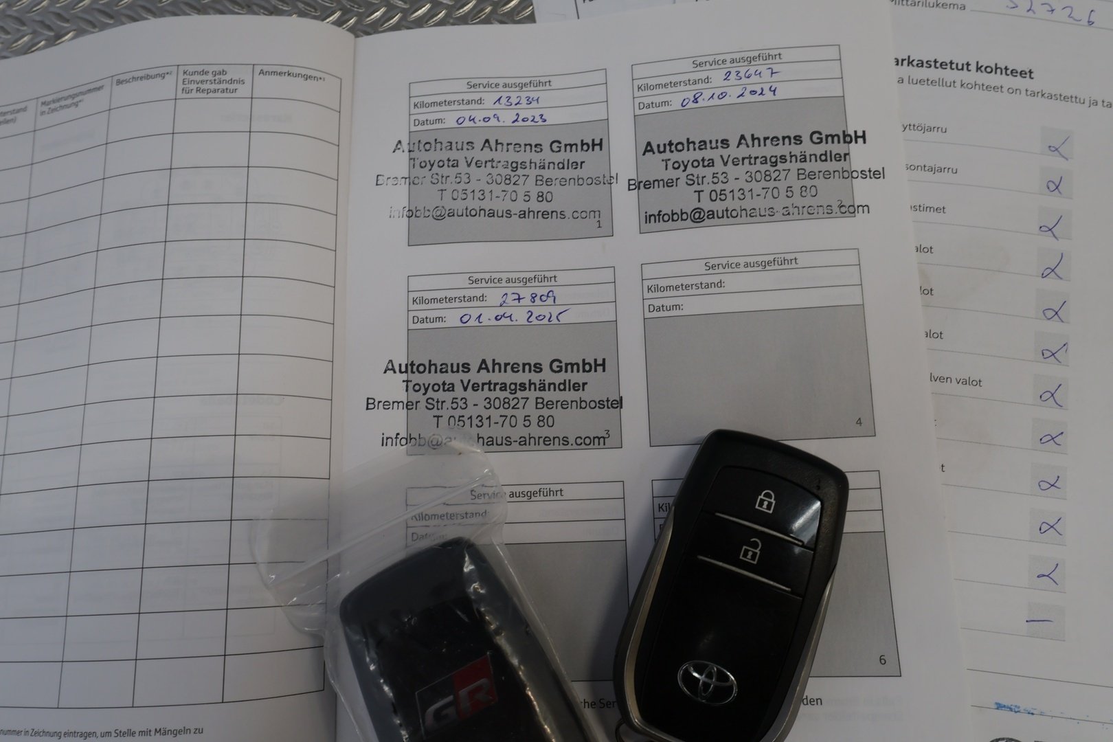 - Paperinen merkkiliikkeen huoltohistoria (Viimeisin huolto: 4.2025 / 27tkm)
