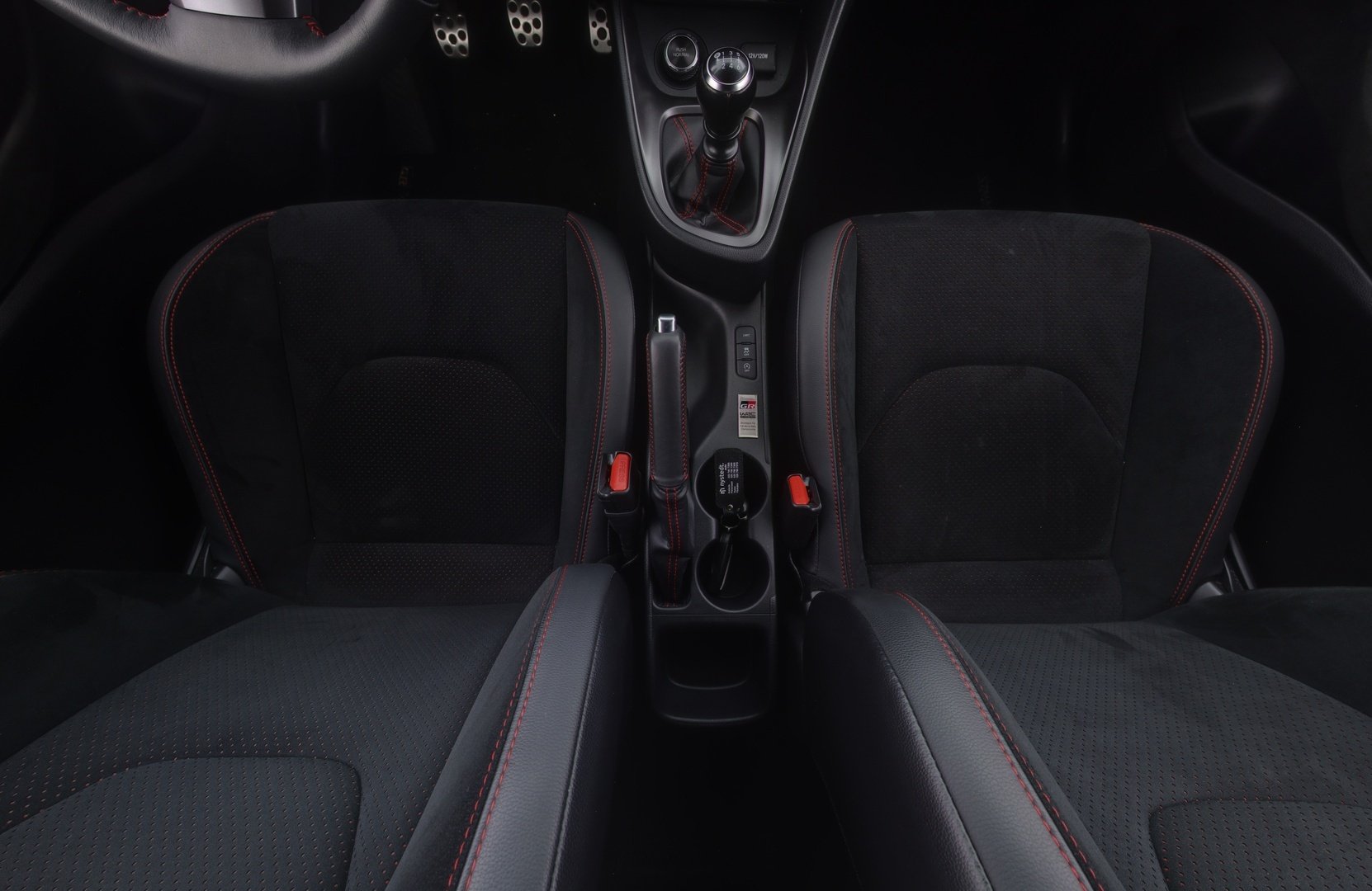 - Istuimien tumma alcantara -verhoilu punaisin yksityiskohdin
