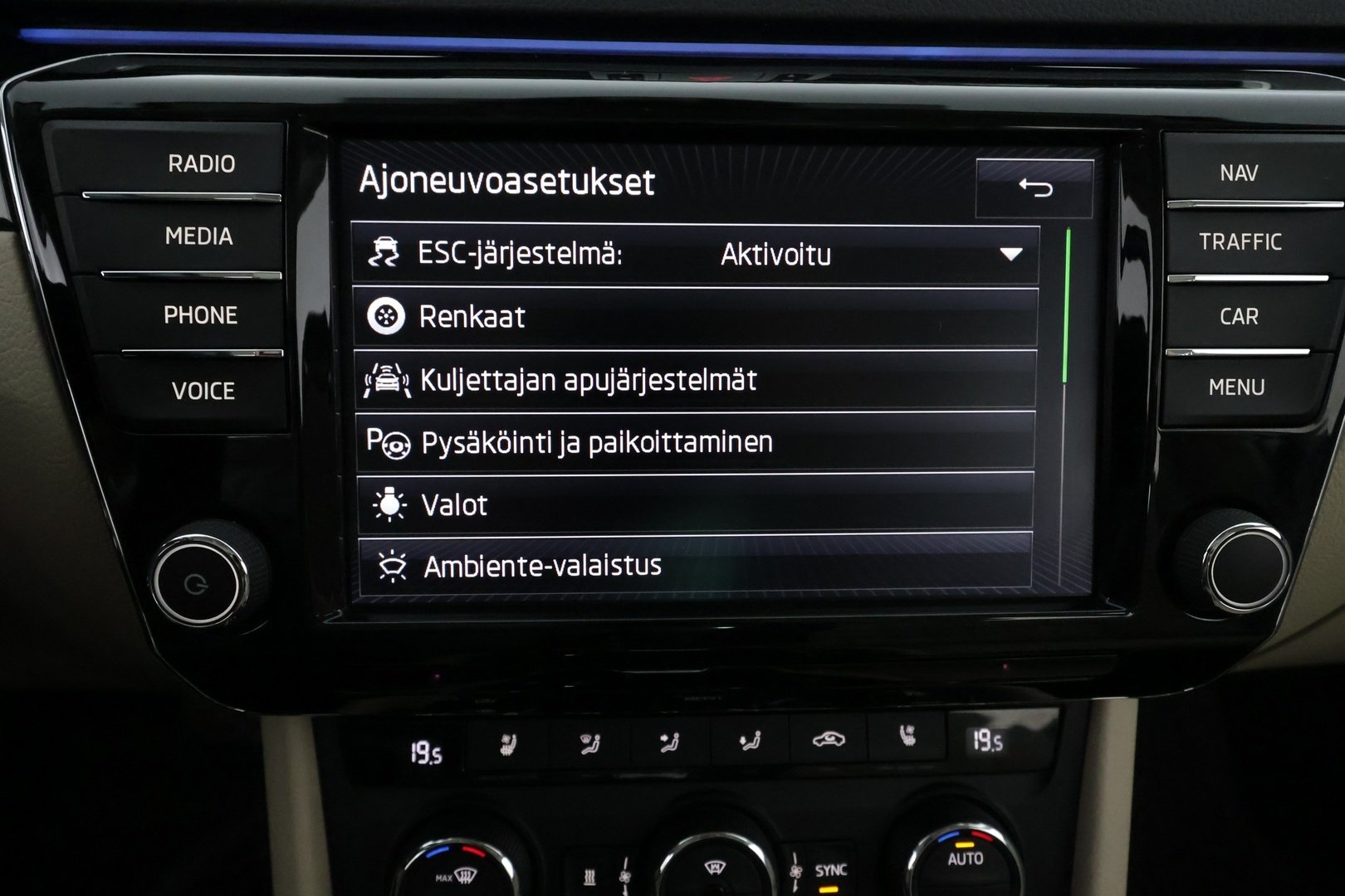 - Nahkainen monitoimiohjauspyörä, kolmipuolainen (radion ja puhelimen säätimet)