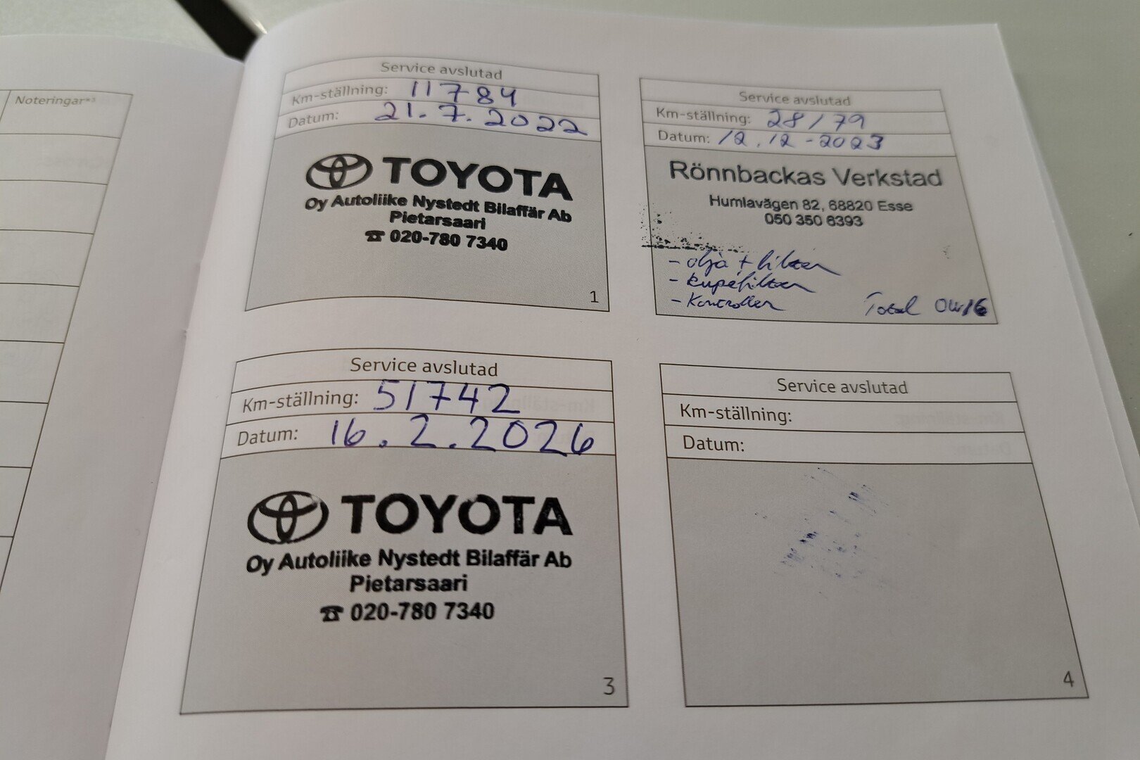 • Täydellinen merkkiliikkeen huoltokirja