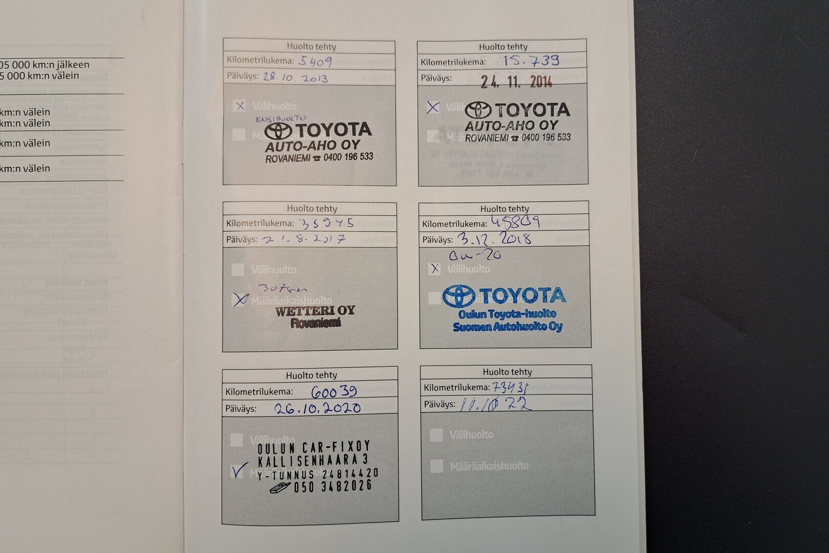 - Huoltohistoria
