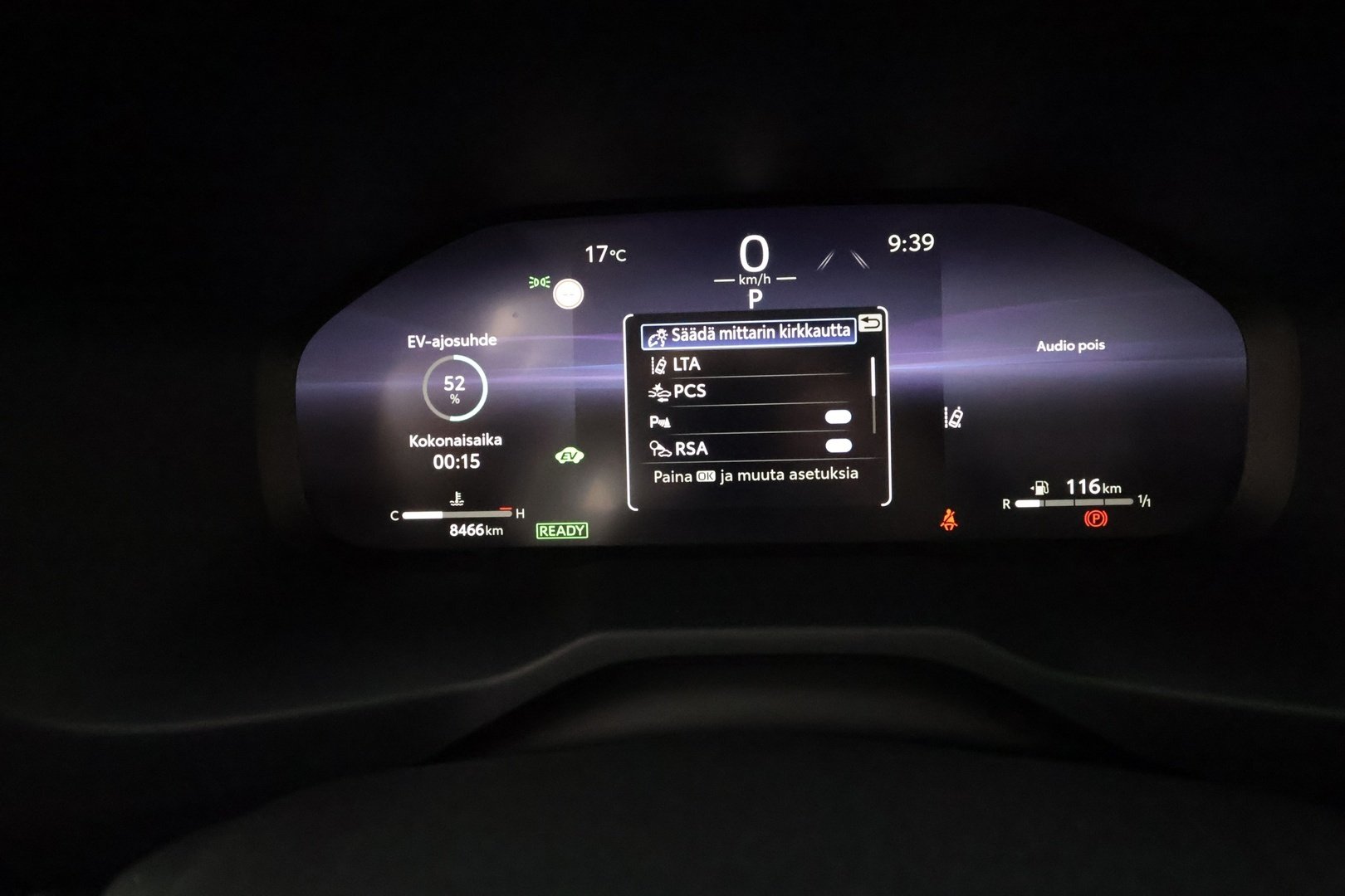 • Audion, kaistanpitoavustimen ja vakionopeussäätimen painikkeet ohjauspyörässä