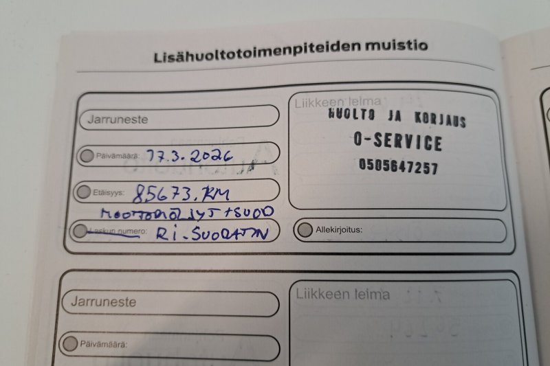 - Viimeisin huolto tehty 17.03.2026/ 85673km