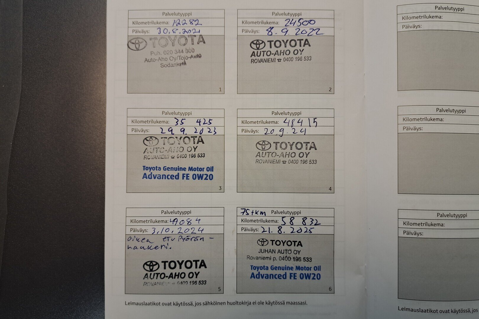 - Viimeisin huolto tehty 21.8.2025/58 832 km