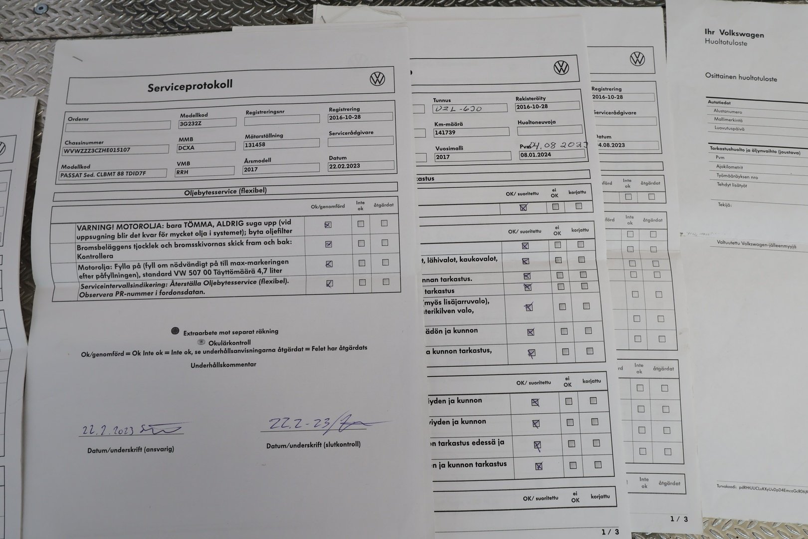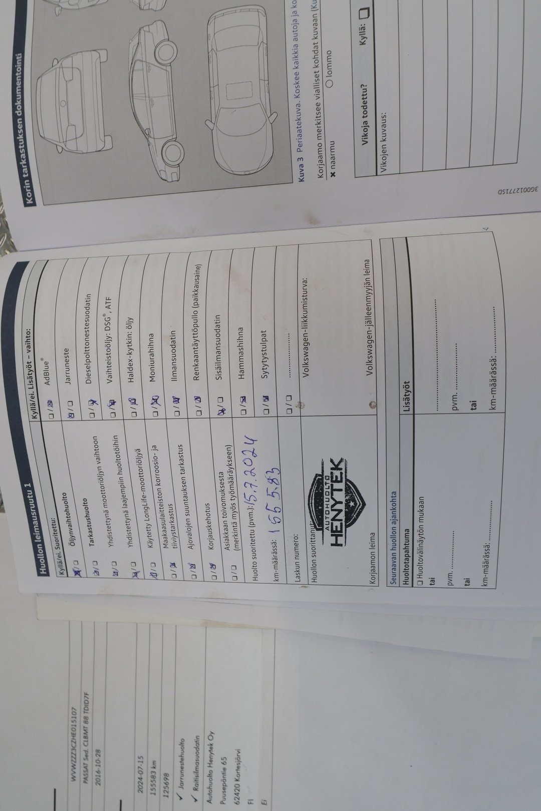 - Paperinen huoltohistoria