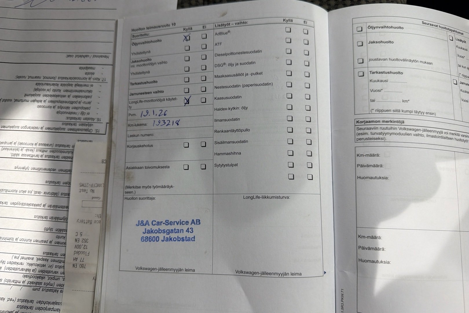 - Huoltokirja
