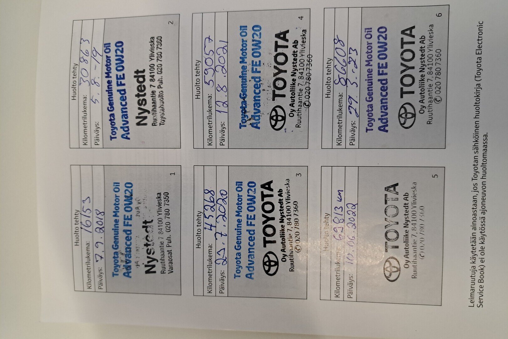 - Paperinen huoltohistoria