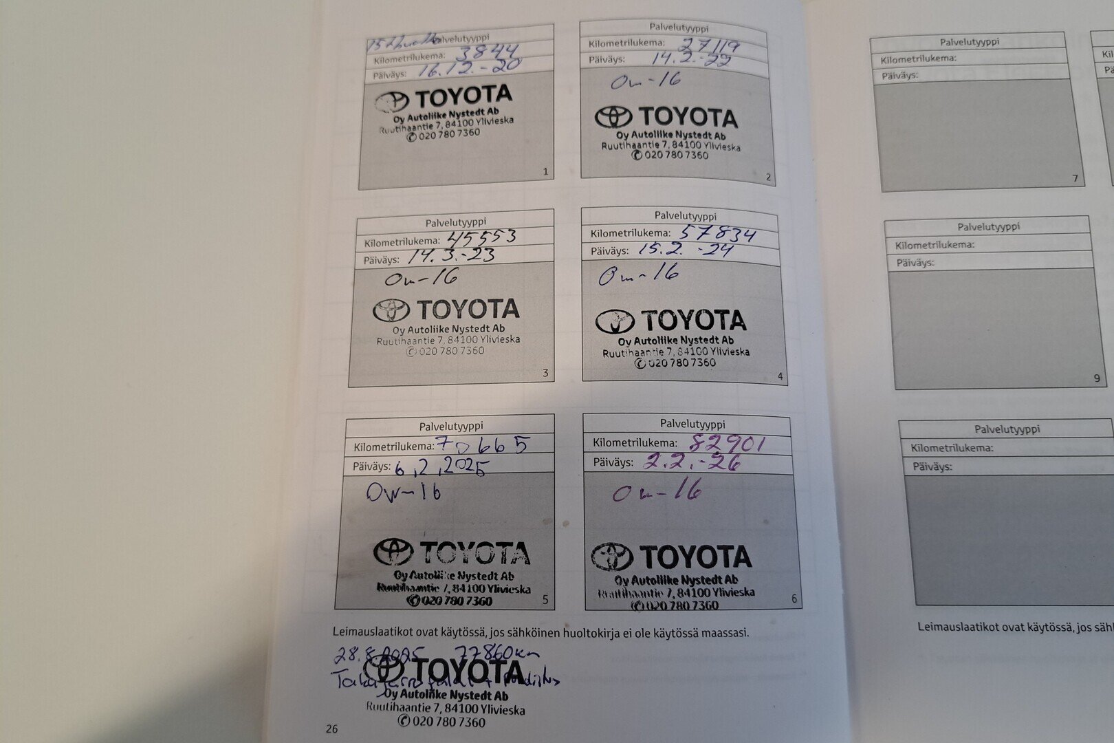 - Viimeisin huolto tehty 2.2.2026/82 901 km