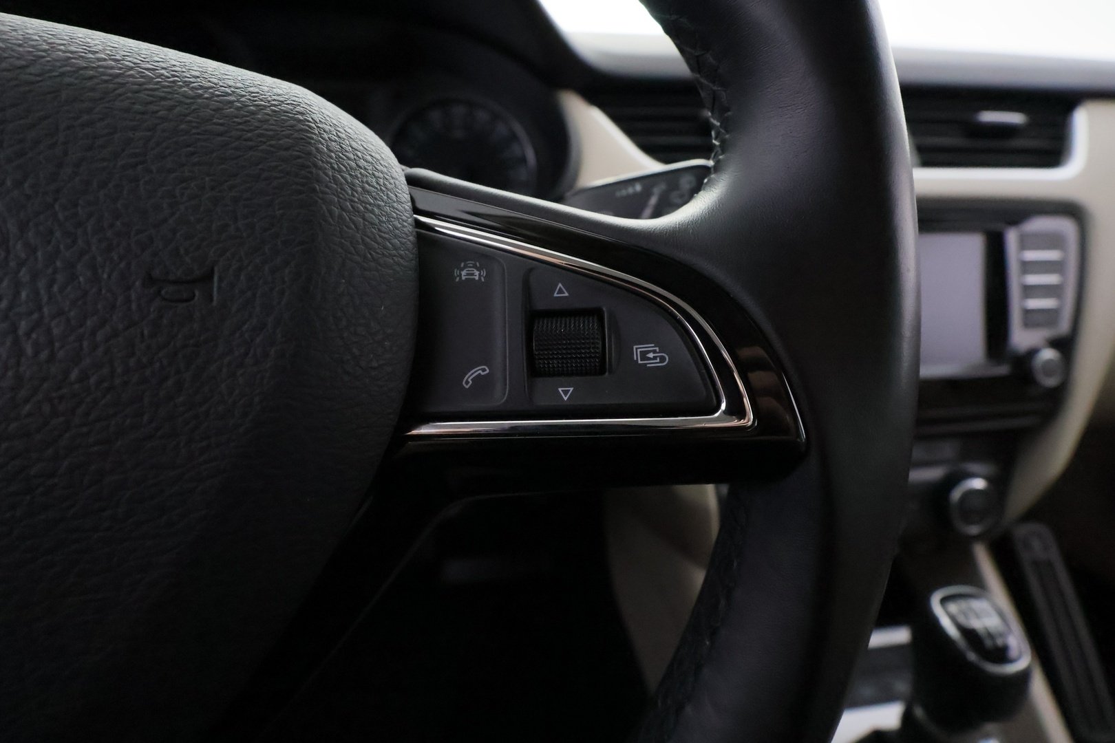 - Nahkainen monitoimiohjauspyörä, kolmipuolainen (radion ja puhelimen säätimet)