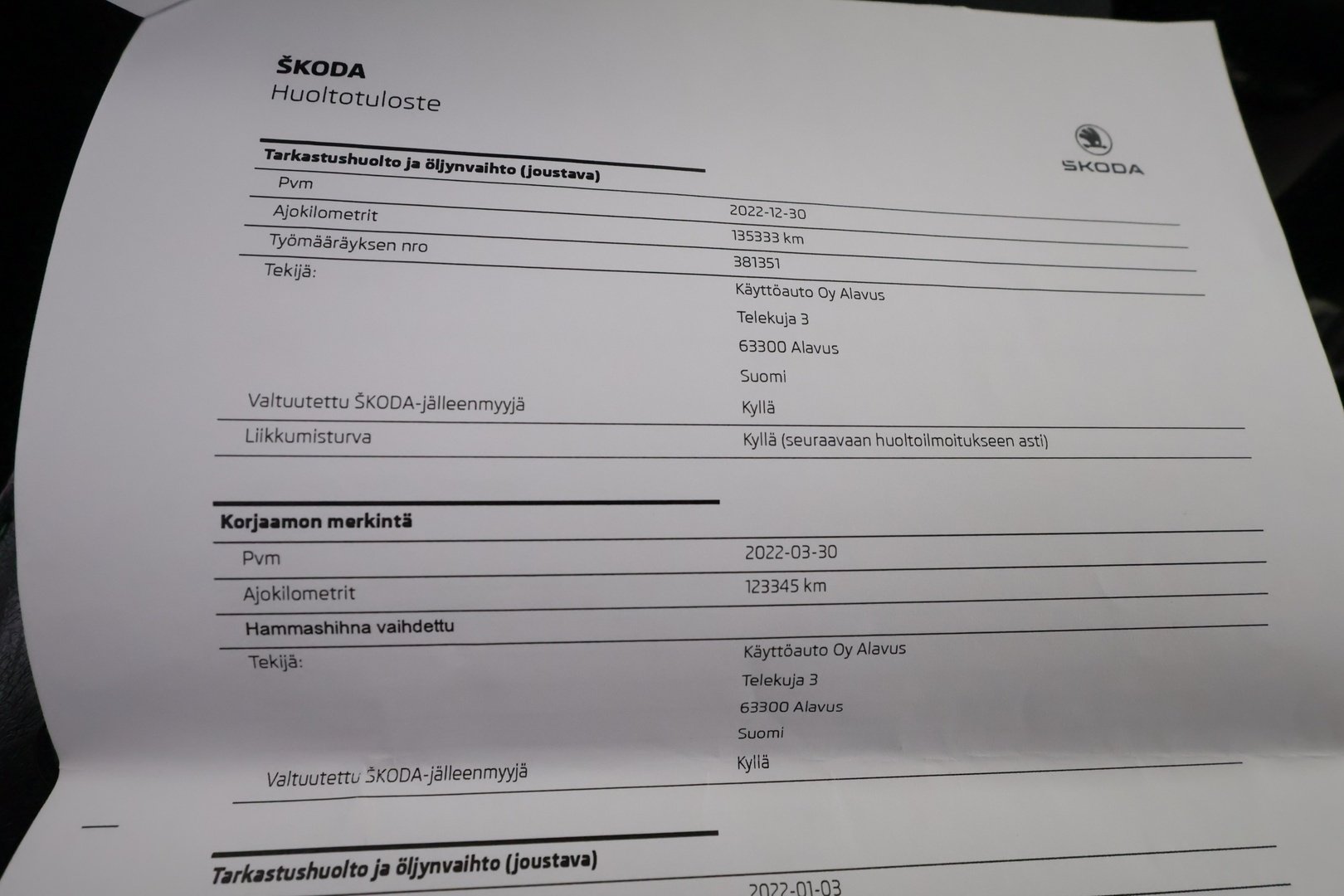 - Huoltokirja